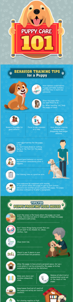 The below infographic, courtesy of Spring Creek Labradoodles, offers great tips, for both puppies and new dogs in general.